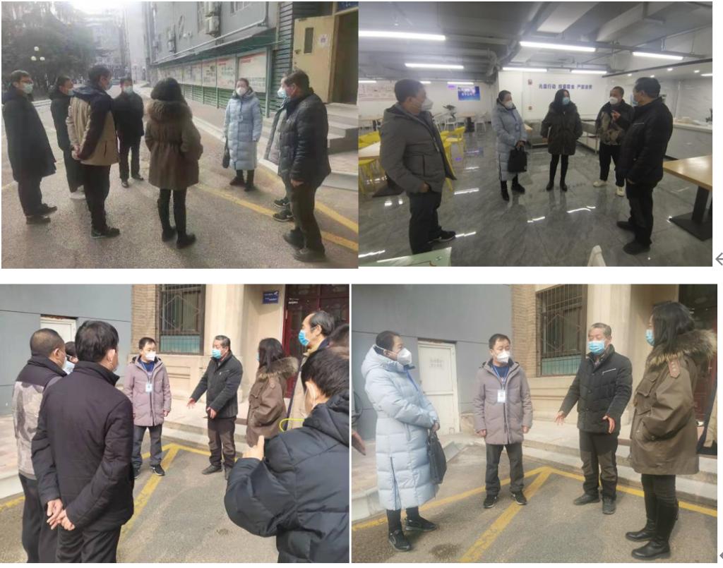 1月10日上午,张家村街道综网中心主任郑萍与张家村街道融信社区党支部书记、社区主任谷永萍一行来william(院)含光校区检查指导疫情防控工作。