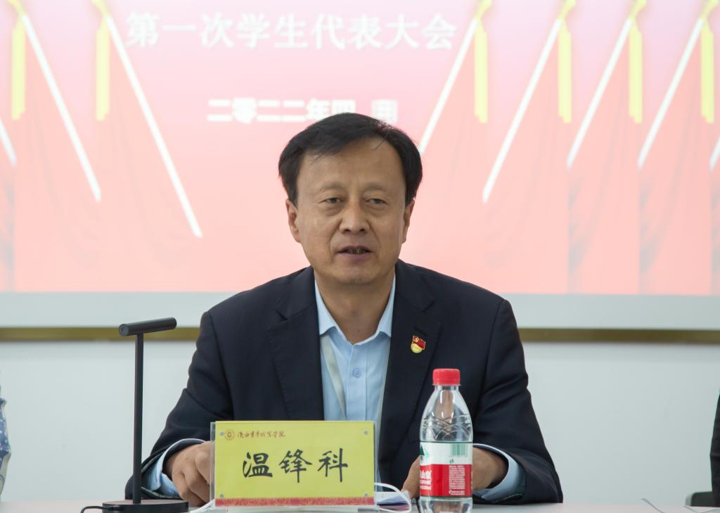 开幕式上,温锋科充分肯定了过去一年来学生会组织为校院改革发展做出的积极贡献,希望全体学生骨干和广大学生代表能够继续发挥好模范带头作用,团结带领全校(院)同学蓄势待发再启航、携手同行谱新篇。同时,他为校院新时代青年学生全面发展进一步指明方向:一是树立远大理想,筑牢信仰之基,争做新时代有志气的新青年。他希望同学们一要坚定正确的政治方向,树牢强国之志,不断锤炼适应新发展阶段的政治素质和过硬本领;二要锤炼品德意志,勇于攻坚克难,始终葆有苦干实干、不懈奋斗的精气神,争做新时代有骨气的新青年;三要以“功成不必在我”的精神境界和“强国一定有我”的历史担当,练就堪当民族复兴重任的“宽肩膀”和“硬本领”,砥砺艰苦奋斗,提高综合素质,争做新时代有底气的新青年。