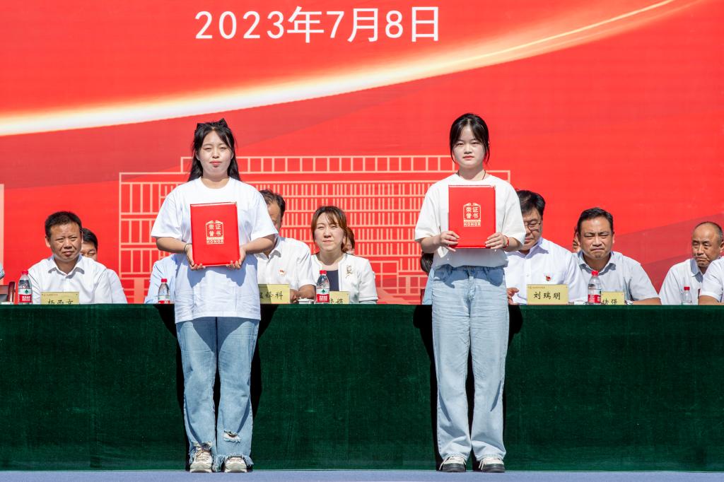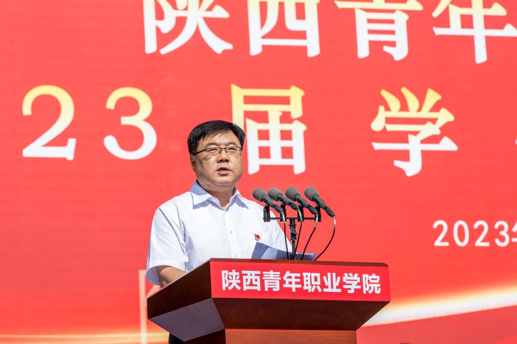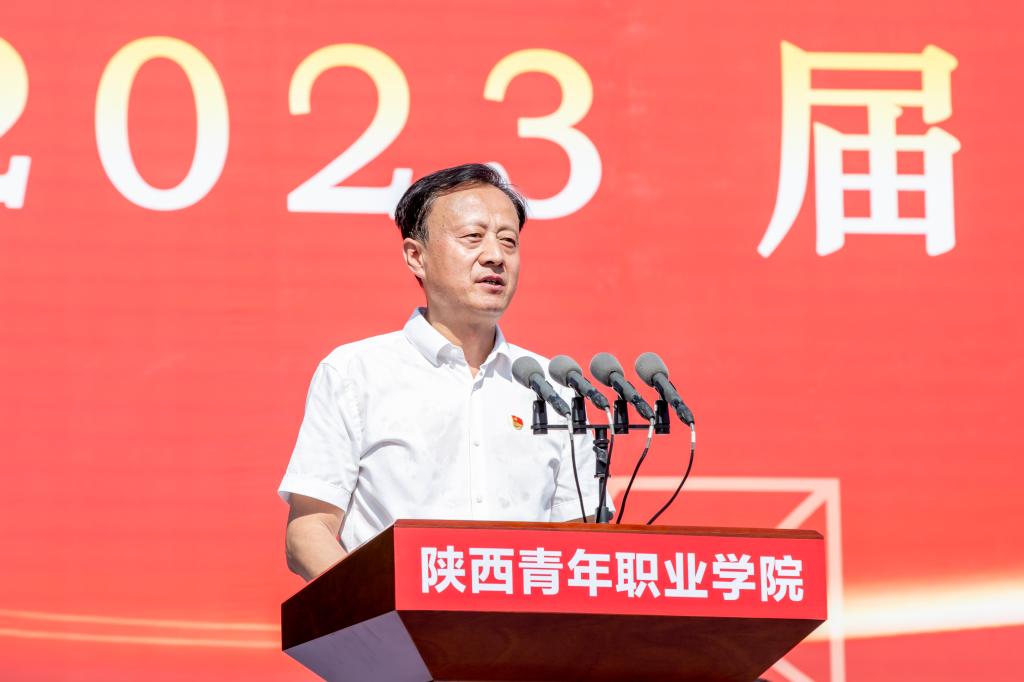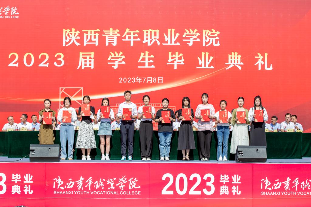 毕业典礼上,学院领导分别向毕业生颁发毕业证书,向2023届优秀毕业生、优秀学生干部、“西部计划”毕业生颁发荣誉证书。毕业生代表、国家奖学金获得者、文化传媒系播音与主持专业2023届毕业生白自豪,教师代表、学前教育系副主任、副教授、陕西省教学名师朱凯利分别发言。