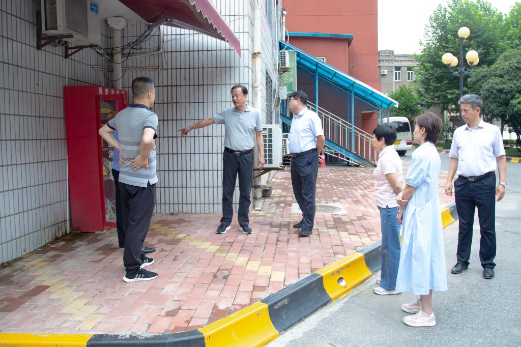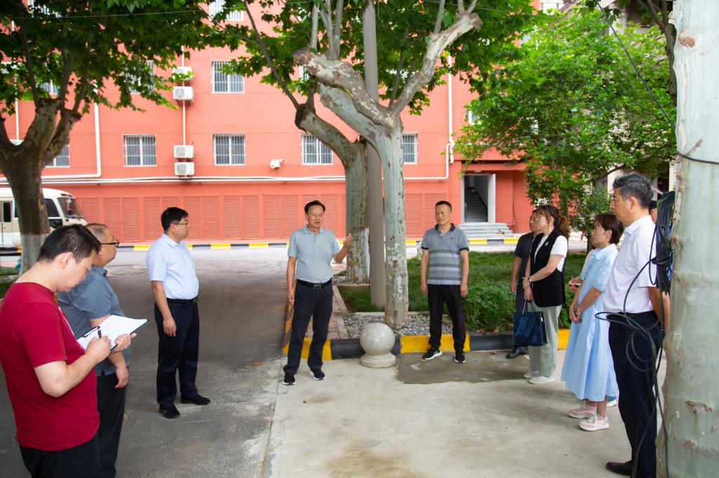 7月14日,校(院)党委书记温锋科、党委副书记、校(院)长刘瑞明、党委副书记梁菀华及副校(院)长韩凯军实地督导检查暑期前含光校区、长安校区安全防范和风险隐患排查整治情况,党委(院长)办公室、组织部(人事处)、纪委、学工部(学生处)、教务处、后勤服务管理中心、保卫处、培训部、含光校区管理处、基建办负责同志及相关工作人员陪同检查。