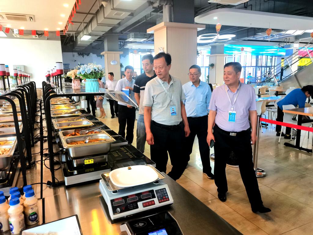 温锋科一行先后来到学校南大门、学生宿舍、一卡通服务大厅、快递站、超市、美发室、浴室、食堂、配电、供水及污水处理设备间等区域和场所,实地查看门禁管理、值班值守、安全防范、住宿餐饮、快递服务、物资储备、生活保障与饮用水管理等情况,重点了解学生返校情况,服务保障情况和上次发现问题整改情况。