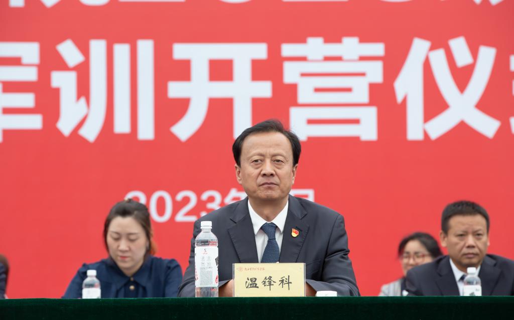 温锋科为军训团授旗。2023级新生军训正式开营。