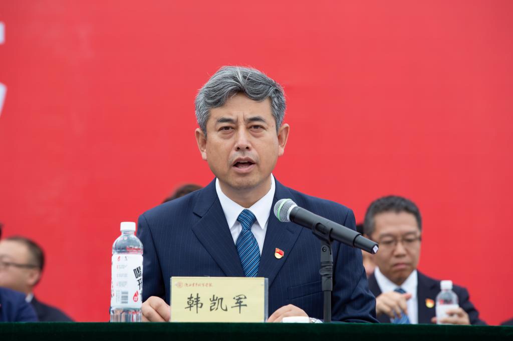 副院长韩凯军在总结大会时号召同学们希望2023级全体新同学秉承学院朝气蓬勃、至诚至坚的校训,以饱满的热情积极主动投身军训,为三年大学生活开好头,不负青春,不负韶华。