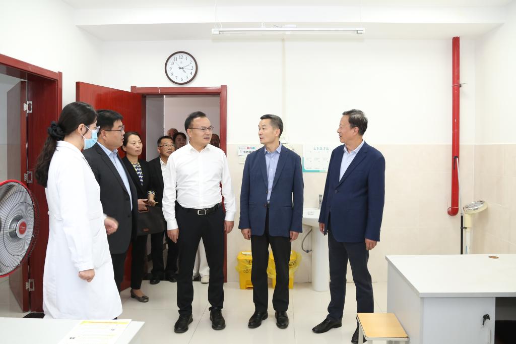 冯立文、杨永涛一行实地参观了解了长安校区整体建设情况,着重深入校(院)医务室调研考察了医务室建设运行、内部功能布局、医疗设施配置、医护人员配备及师生医疗救治、疫苗接种、医保参保等方面工作情况。