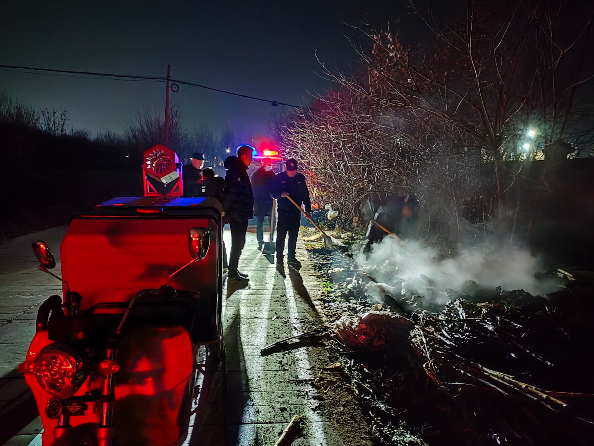 此次火情过火面积约20平方米,未造成人员和财产损失。事后初步分析是路人乱扔烟头引燃草地上堆积的垃圾、玉米秆、爆竹纸屑等杂物引发火灾。