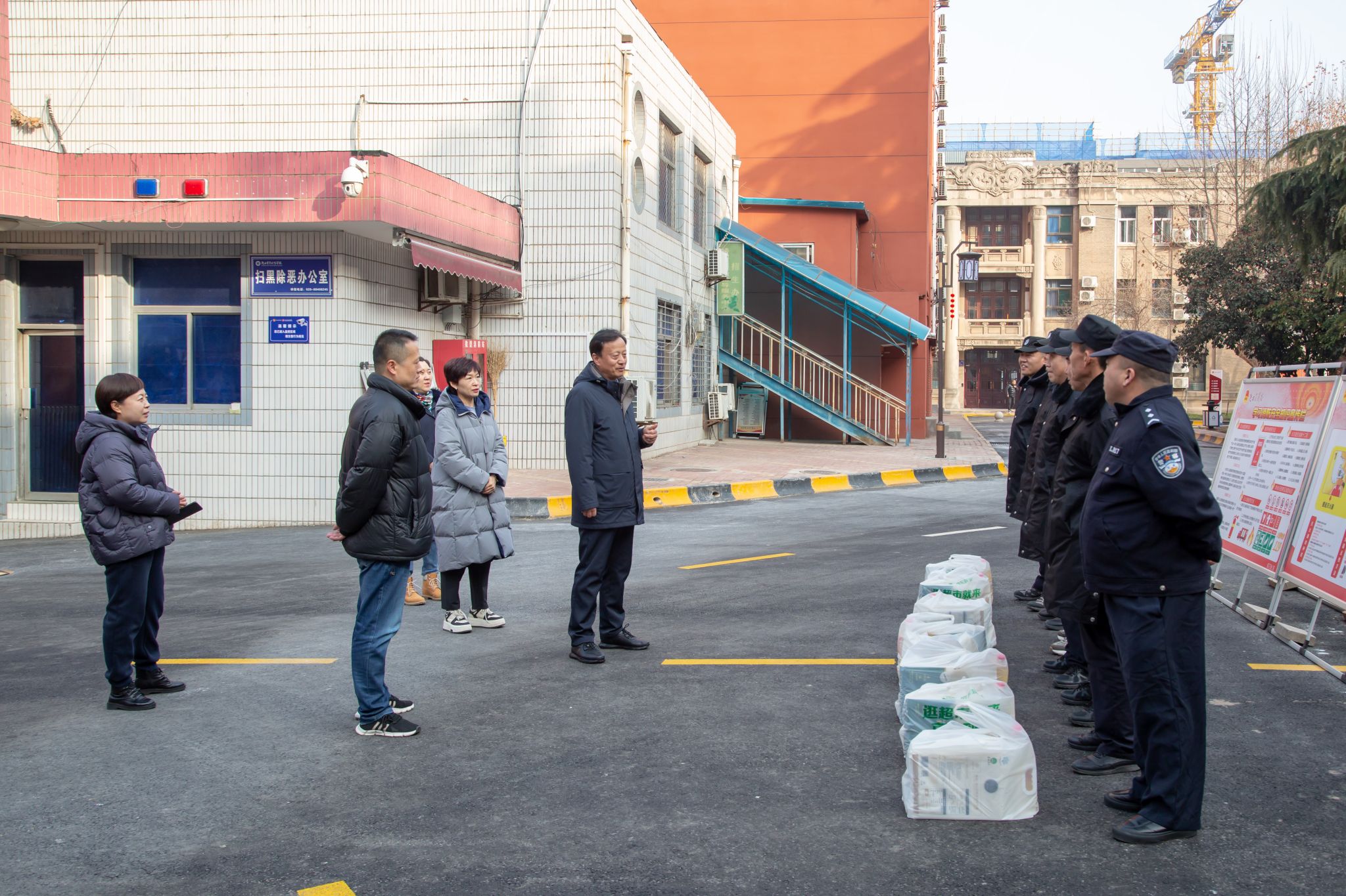 校(院)领导先后到校门口、餐厅、保安室、总值班室、锅炉房等处看望慰问在岗的一线工作人员,为他们送去新春慰问品,并向他们致以节日问候和新春祝福。校(院)领导与值班人员亲切交谈,详细了解假期期间后勤保障、巡逻值守、门禁安全等方面工作情况。