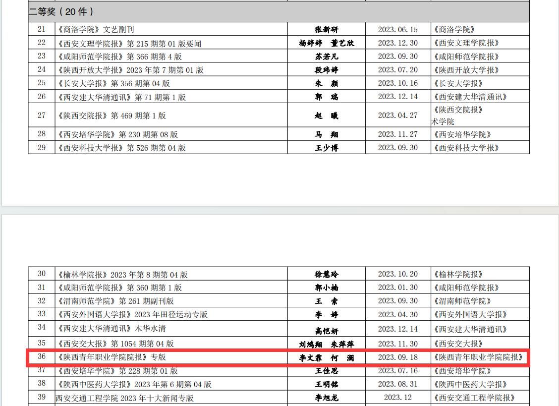 近期,陕西省高校校报研究会公布了2023年度“陕西高校新闻奖”评选结果,我院3件新闻作品分别获特等奖、一等奖、二等奖。