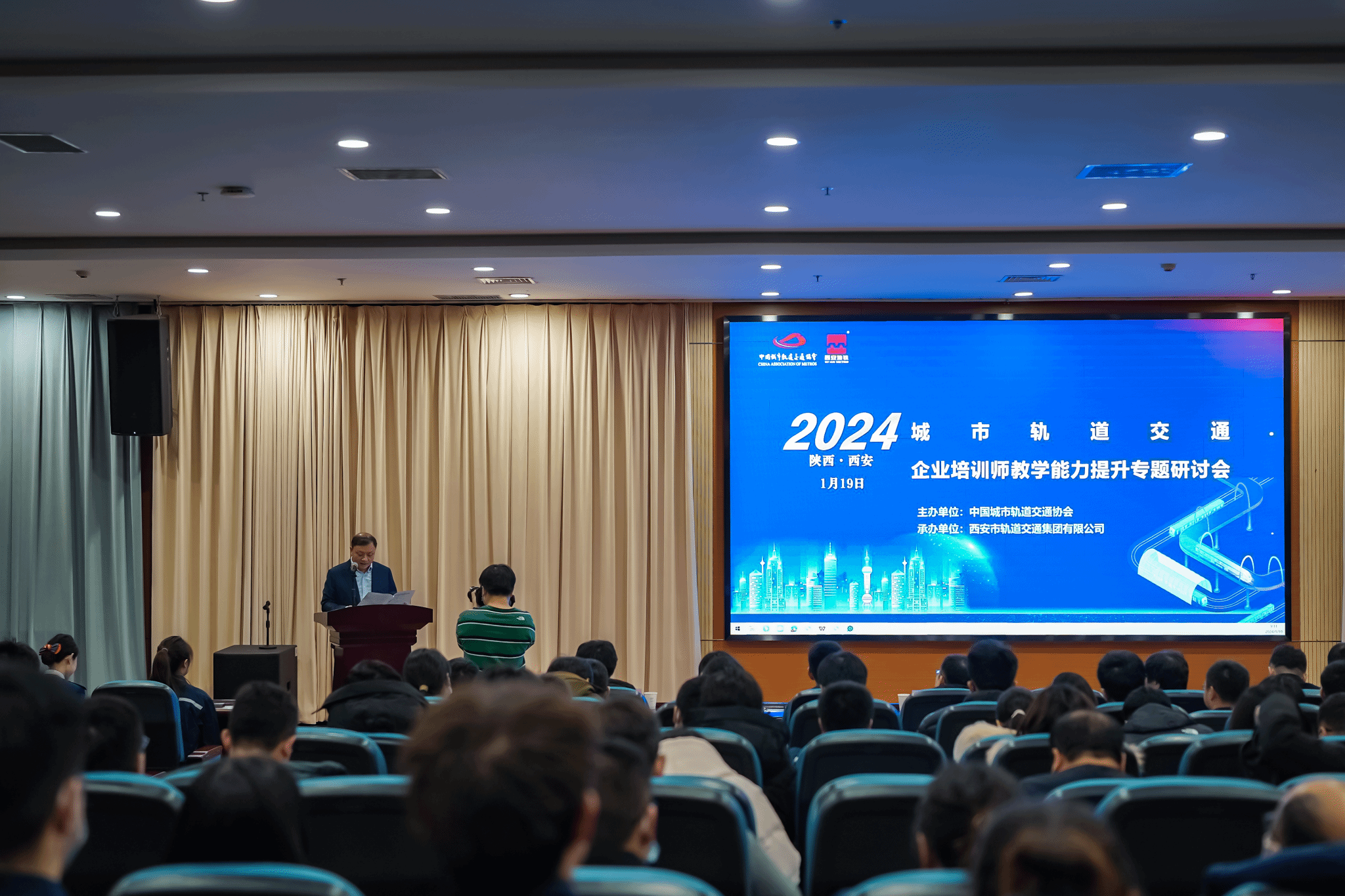 19日上午,中国城市轨道交通协会培训部主任詹惠敏、西安市轨道交通集团运营分公司党委副书记、总经理卢剑鸿到场致辞;西安市轨道交通集团有限公司运营分公司副总经理张浩以“西安地铁俱乐部模式下的企业培训师创新培养实践”为题,详细介绍了西安地铁运营分公司培训师队伍建设情况;协会培训部副主任周泽岩依据《城市轨道交通运营企业人力资源2022统计分析报告》重点围绕企业培训师队伍建设情况进行说明。随后,西安地铁资优培训师代表聚焦1+X培养模式、标准化培训班组建设、五小创新发明、优秀微课制作等内容进行主题分享,畅谈心得,传递匠心。最后,大会表彰了西安地铁运营分公司2023年度资优培训师并签订“名师带徒”任务书。