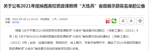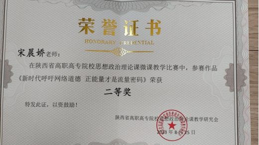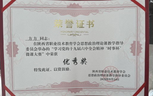 学生获2021年陕西省思政课大练兵“思政课教学团队能手”荣誉称号