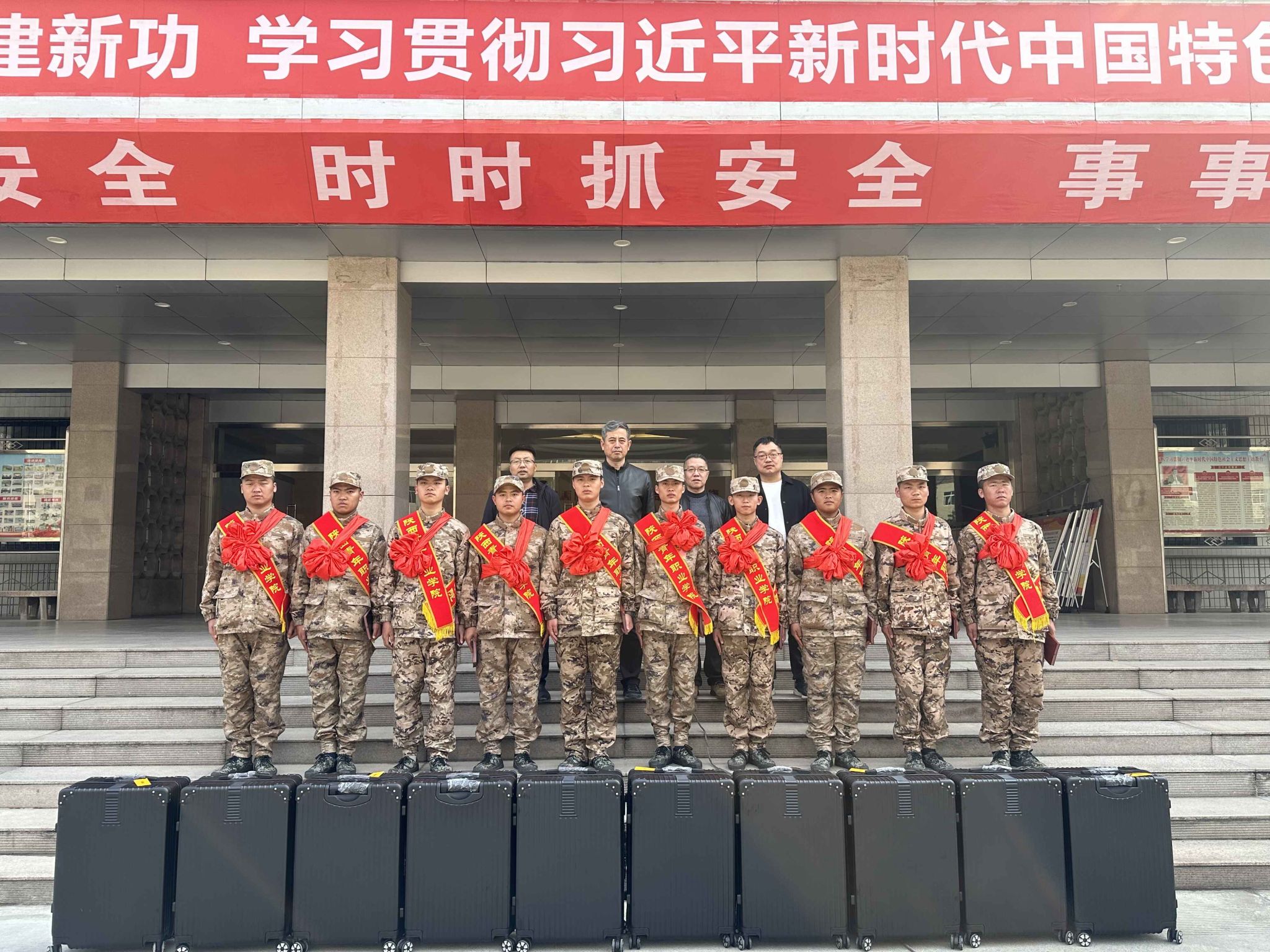 韩凯军对碑林区人民武装部在征兵工作中的悉心指导、对省军区综合训练队在役前训练教育期间的辛勤工作表示感谢。代表学院党委对我院10名圆梦军营的学子表达了衷心的祝贺,同时对10名入伍学生提出了三点希望:一是要怀揣梦想,淬炼成钢。要以习近平强军思想为指导,瞄准新时代强军目标,锻炼过硬作风,提升综合素质和能力,早日成长为“有灵魂、有本事、有血性、有品德”的新时代革命军人;二是要不畏艰辛,服务人民。要服从命令听指挥,发扬人民军队优良传统,时刻心系祖国,情系人民,做好人民子弟兵;三是要继续前进,再创佳绩。进入军营后要继续牢记学院“朝气蓬勃”“至诚至坚”的校风校训,强健体魄,磨练意志,保家卫国,早日向母校传来立功捷报,为实现中华民族伟大复兴贡献青院力量。(学生工作部/师壮壮 供稿)