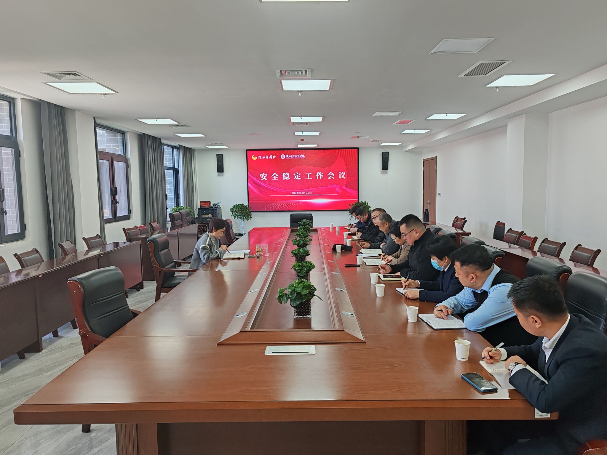 3月25日下午,校(院)安全稳定工作会议在长安校区召开。党委副书记梁菀华出席并讲话,后勤服务管理中心、保卫处、含光校区管理处主要负责人及相关工作人员、我院两校区餐厅经理参加。