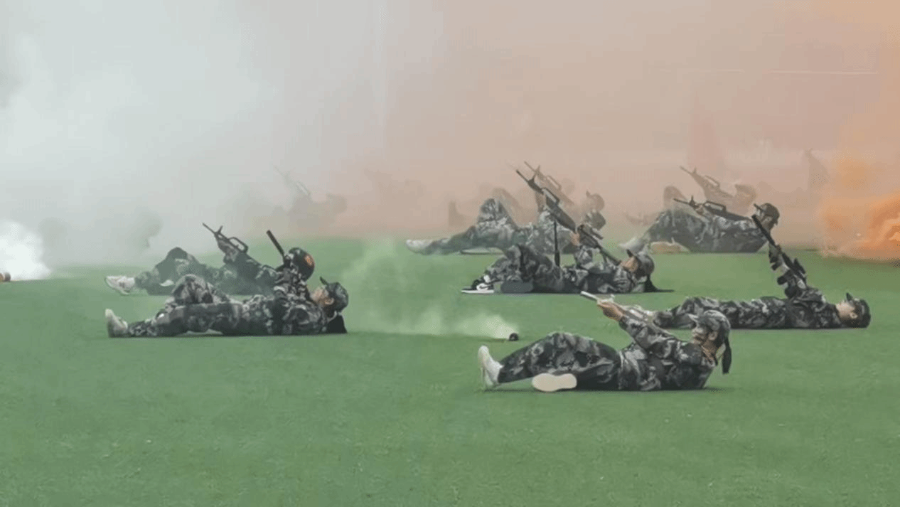 大会在庄严的国歌声中拉开帷幕。国旗护卫队步伐坚定有力,鲜艳的五星红旗高高飘扬。2024级全体新生身穿戎装,气宇轩昂,以饱满的精神风貌展示14天的军训成果,充分彰显了当代大学生的蓬勃朝气和昂扬斗志。首先进行的是军事训练科目汇报,队列表演、匕首操、拳术表演、战术演练、消防救护等军事训练科目汇报精彩纷呈,同学们动作刚劲有力,眼神坚定不移,尽显威武之师的风采,精彩的表现赢得全场师生的热烈掌声。