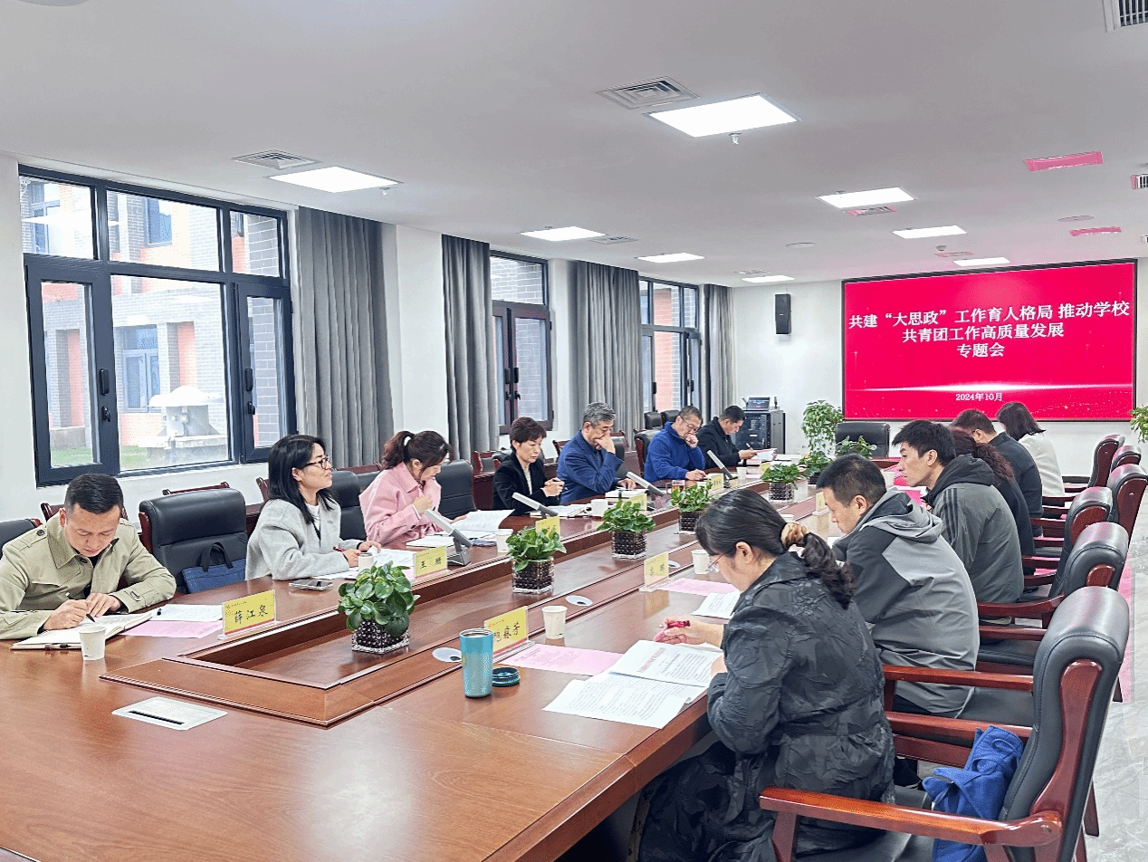 10月21日,共建“大思政”工作育人格局,推动学校共青团工作高质量发展专题会在长安校区召开。党委副书记梁菀华、副校长韩凯军出席,宣传部、组织部、学工部、团委主要负责人,各系党总支副书记、学生工作负责人参加专题会议,会议由校团委书记王珊主持。