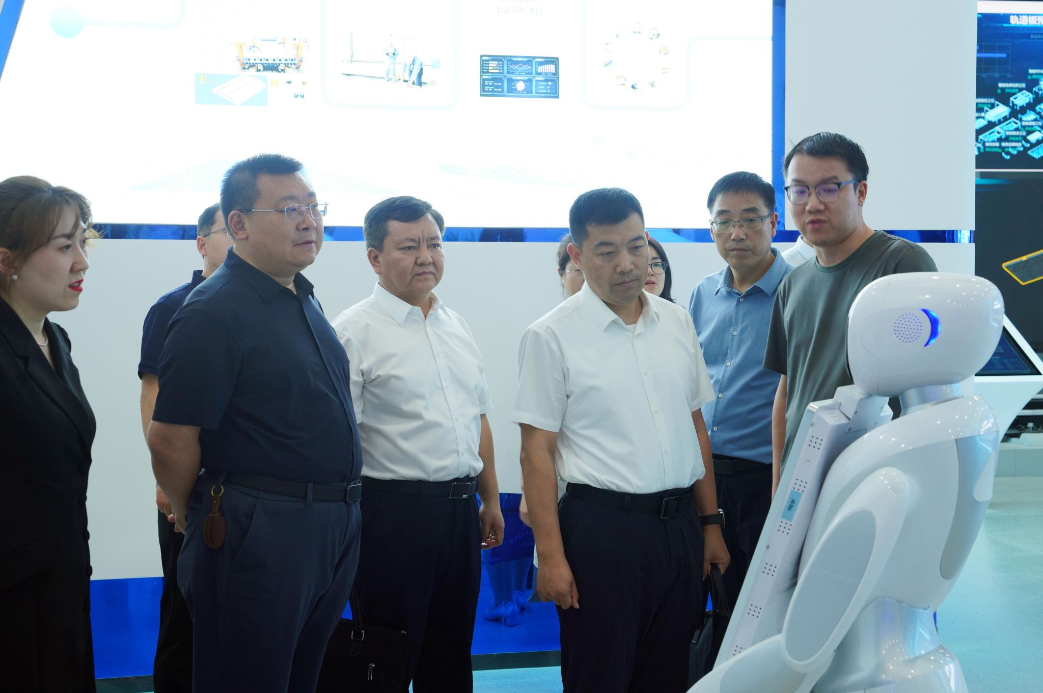 活动中,调研组还参观走访了智慧校园指挥中心、教师发展中心、高铁实训工区、盾构实训基地、高速铁路智慧建造虚拟仿真实训基地等场所。就智慧校园建设、校园安防管控、学生实训管理、产教研融合等方面具体工作进行了实地研讨。