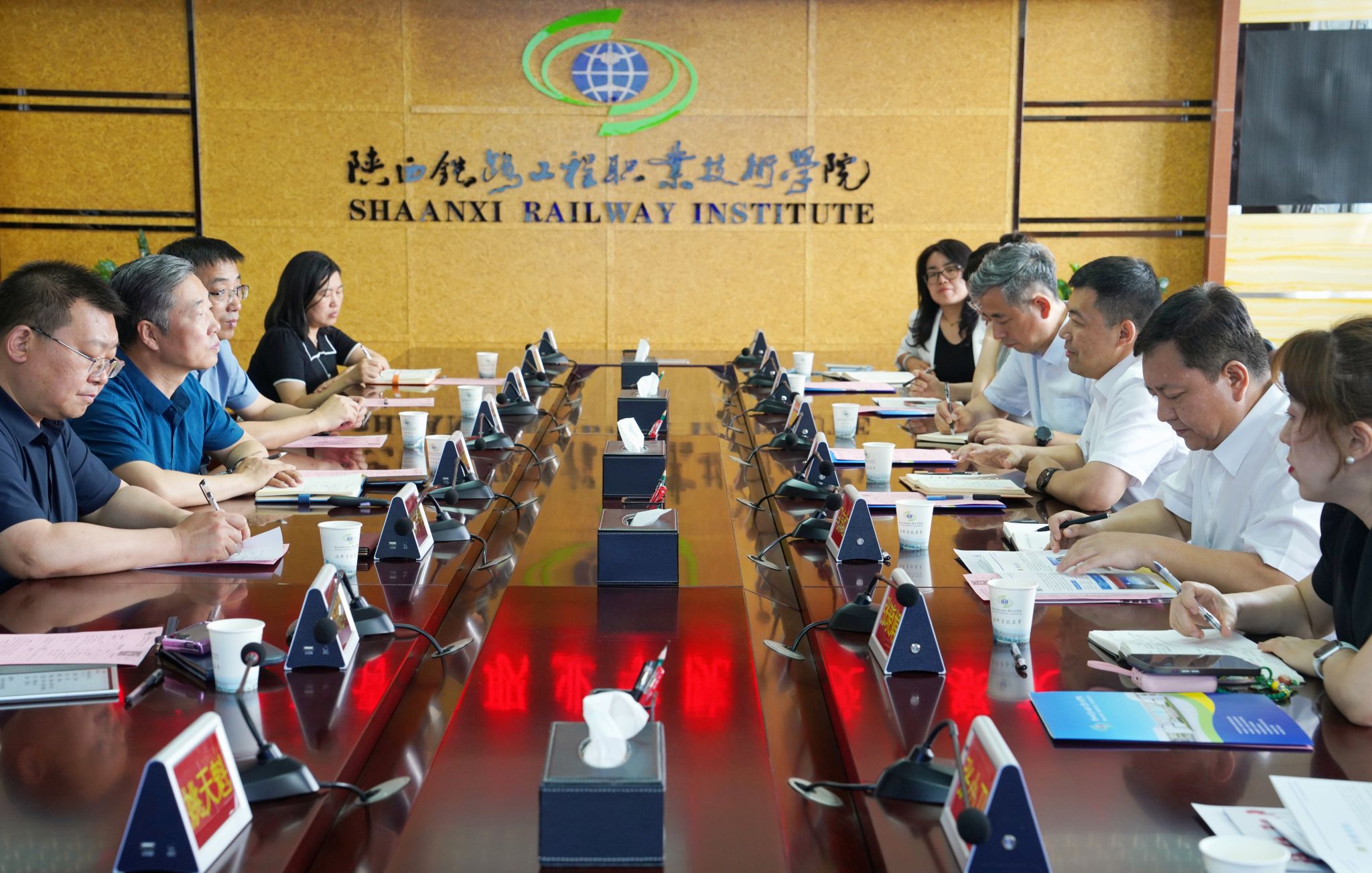 5月14日,学校党委书记张建宽,党委副书记、校长马东红,副校长韩凯军带队,赴陕西铁路工程职业技术学院开展调研交流。陕西铁路工程职业技术学院党委书记焦胜军,党委副书记、校长韩小卫,副校长张学钢等出席活动。