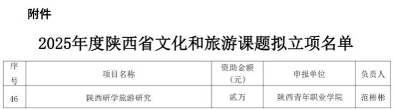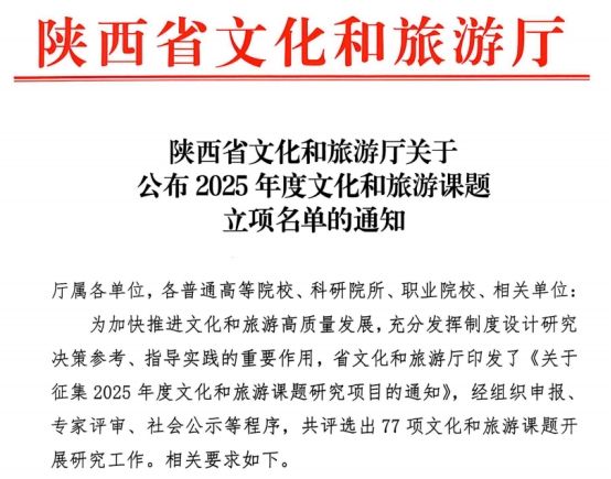 近日,陕西省文化和旅游厅发布《关于公布2025年度文化和旅游课题立项名单的通知》,william范彬彬老师主持的“陕西研学旅游研究”课题获批立项。