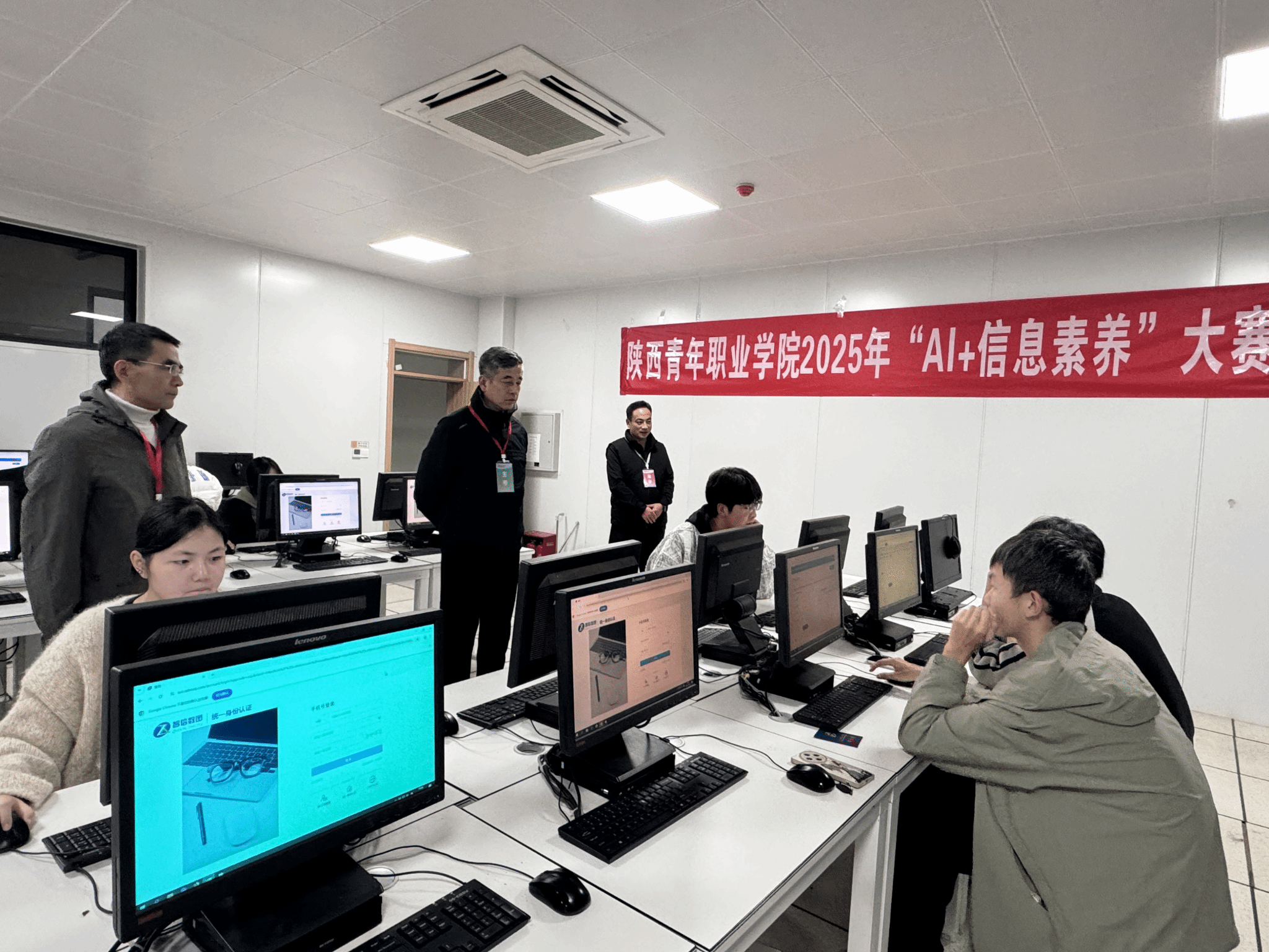 副校长韩凯军,数字经济与数字技术系党总支书记、副主任庄绪强,图书馆副馆长刘延民亲临现场指导,对赛事的组织工作和学生的积极表现给予高度评价。赛场上,氛围紧张而热烈。参赛选手们全神贯注、沉着应战,凭借扎实的AI应用功底与出色的信息处理能力破解一道道难题,高分频出。经过激烈角逐,最终27名同学脱颖而出,分获一、二、三等奖。其中,获得一等奖的6位选手将代表学校参加2025年陕西省高职高专院校“AI+信息素养”大赛。