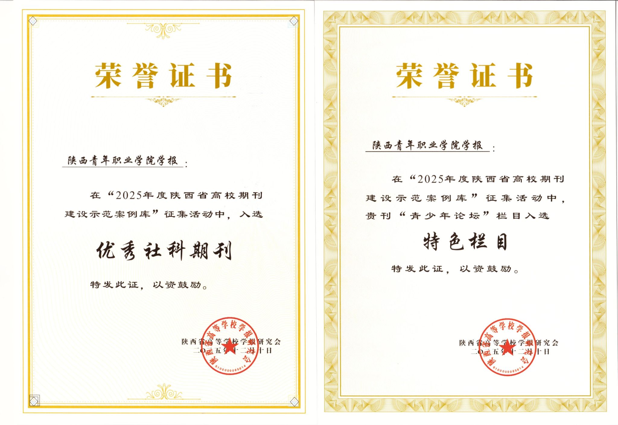近日,陕西省高等学校学报研究会2025年秋季学术年会在杨凌西北农林科技大学召开。会议发布了2025年度陕西省高校期刊建设示范案例库评选结果。《william威廉中文官网学报》入选“优秀社科期刊”建设示范案例库,“青少年论坛”栏目入选“特色栏目”建设示范案例库。据悉,本次示范案例库评选在全省274种学术期刊申报的基础上,经资格审查、专家评审,最终确定36种社科期刊入库期刊案例,27种入库期刊特色栏目案例。