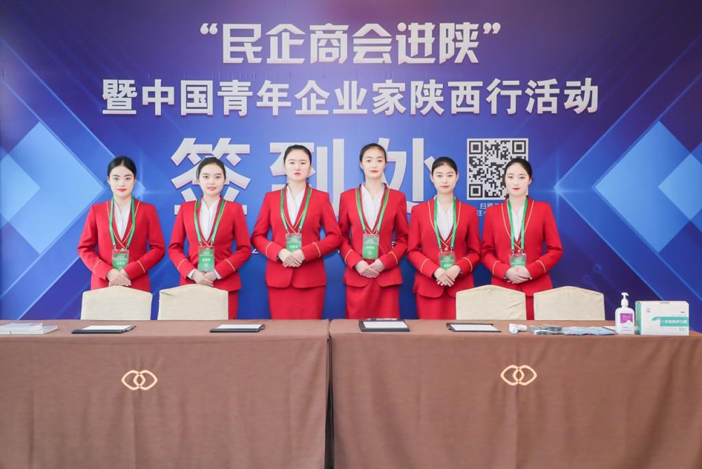 4月15日,“民企商会进陕”暨中国青年企业家陕西行活动座谈会在西安人民大厦国际会展中心举行,陕西省省长赵一德、副省长程福波、商务厅厅长赵璟和全国43家企业的青年企业家出席会议,我院艺术系高速铁路客运乘务学生齐小艳、程文静、马芳、王浩宇、吴东润,、空中乘务专业学生郭倪方、田经伦、亢嘉庆、屈宇晴、冯静怡共10名学生参加了本次会议的接待服务工作。