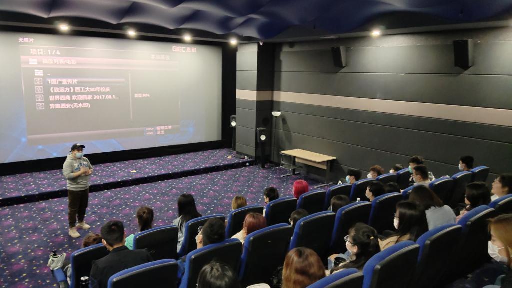 西安国广影视制作公司市场部负责人首先介绍了影视制作的工作流程,并带领师生们参观了影视调色、配音、特效、剪辑等工作室。在该公司4K影院为师生播放了由该公司制作的影视剧、企业宣传片等丰富案例。企业特别安排经验丰富的影视制作总监给同学们详细生动地介绍了关于影视项目制作的工作状况、制作流程、技术要求,特尤其强调了文案、创意对影视工作的重要性。企业方负责人对影视行业、工作环境、相关岗位的薪资待遇就业前景等方面与同学们进行了深入交流。之后,学生按照本学期专业课程要求,分组在企业现场开展了视频直播报道训练。