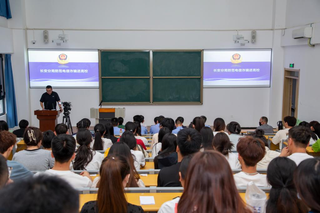杜曲派出所对本次活动大力支持,特为我们邀请到了西安市公安局长安分局反诈中心主任、资深反诈专家丁宇警官授课。丁宇警官结合多媒体课件,生动讲授了近年来电信网络诈骗的案例、特点和手段,以及如何识诈、反诈。特别是深入盘点了高校中发案率较高的七种诈骗手段,包括网络刷单、裸聊、网贷、游戏账号买卖、冒充客服诈骗等。