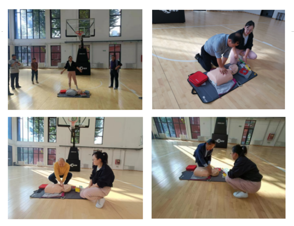 培训邀请了西安市急救中心专业救援人员郝萌萌进行授课。郝萌萌老师以模拟橡胶人为教具,细致耐心地为大家讲解了突发应急情况处置流程、伤情判断、周围环境设置、心肺复苏步骤和基本技巧以及AED除颤仪的使用方法和操作流程。全体参训人员在老师的指导下逐一进行了模拟实操训练。