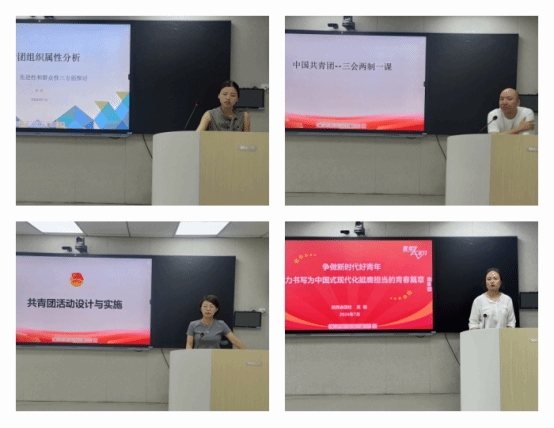 小组成员分别围绕“共青团活动设计与实施”、“共青团的组织属性”、“加强团的组织建设,规范三会两制一课”和“争做新时代好青年 奋力书写为中国式现代化挺膺担当的青春篇章”等四个主题进行了说课展示。