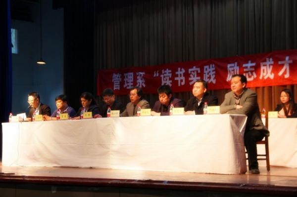 3月26日,管理系2013-2014学年度第一学期“读书实践 励志成才”主题活动表彰推进会在青华校区大礼堂隆重召开。院长刘锋、副院长赵兴刚,学院联系管理系学生班的处级领导李振龙、王安平、何志川、白继刚、徐学海、党彩丽、崔强等出席会议。大会由系主任助理刘延隆主持,管理系2012级、2013级全体学生700余人参加。