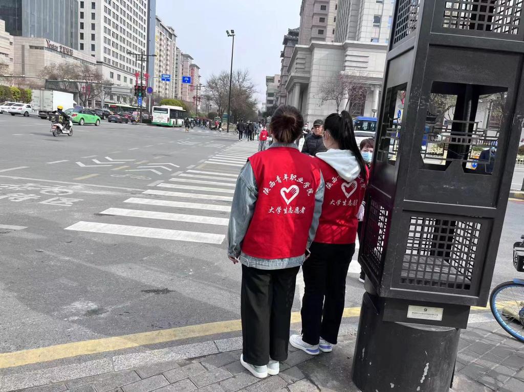 3月25日上午,我院20名志愿者在新城区西华门十字参加“执陕耀团徽,绽志愿青春”文明交通志愿服务活动。