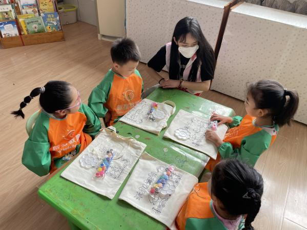 活动中,志愿者们来到活动现场,首先配合心星园儿童中心的工作人员,做好维持秩序、派发饮料等工作。随后,志愿者们辅助每一位儿童用手中的画笔进行创意绘画,现场气氛轻松愉悦。