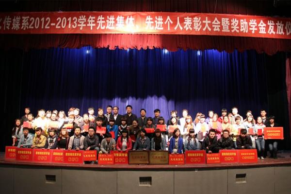大会在庄严的国歌声中拉开了帷幕,系主任助理吕子静宣读了《学院关于表彰2012-2013学年度先进班集体、三好学生标兵、三好学生、优秀学生干部的决定》和《文化传媒系关于表彰第一学期学习成绩优秀学生的决定》。