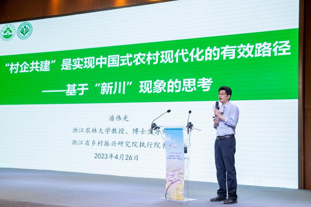 浙江大学中国农村发展研究院首席专家黄祖辉,浙江工商大学原校长、浙商研究院院长陈寿灿,北京师范大学中国乡村振兴与发展研究中心主任张琦,湖州师范学院“两山”理念研究院名誉院长王景新,我院教授潘伟光分别就《新型农村集体经济发展之路》《浙商赋能乡村振兴:共富场域与实践路径》《“八八战略”与“新川模式”一中国式乡村现代化发展创新实践》《振兴乡村亟待振兴乡镇企业——新川20年变迁发展的案例及启示》《村企共建是实现中国式农村现代化的有效途径》等主题作主旨发言。