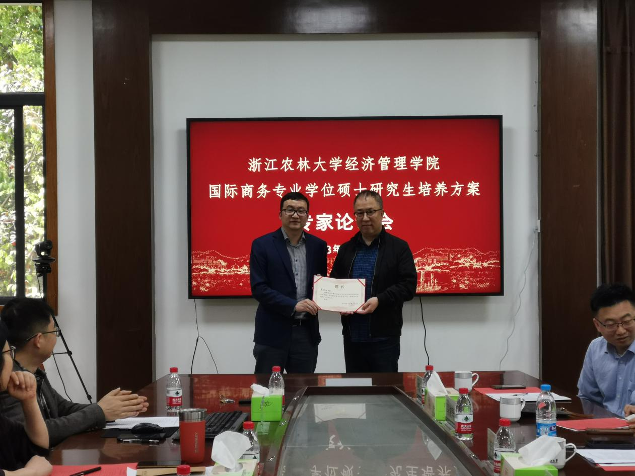全国国际商务专业学位研究生教育指导委员会委员、浙江大学国际商务学科负责人马述忠教授担任论证专家组组长,浙江财经大学经济学院院长王正新教授、中国农业大学永利集团304官网李春顶教授、南京农业大学永利集团304官网国际商务专硕点负责人何军教授、浙江工商大学经济学院马淑琴教授、浙江省商务研究院陈芳芳院长、浙商资产战略发展部总经理冯毅等应邀担任论证专家。