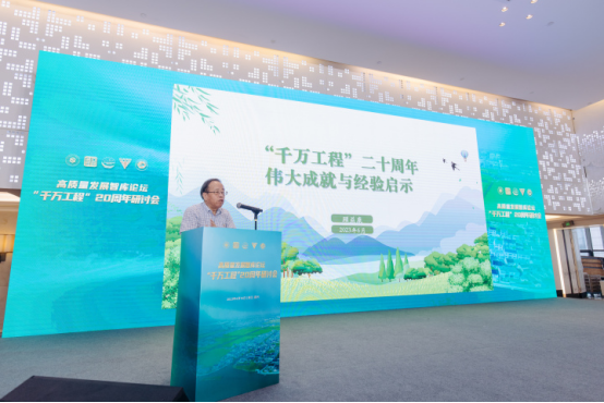 顾益康教授作了题为《“千万工程”二十周年伟大成就与经验启示》的主旨报告,深情回顾了习近平同志亲自擘画“千万工程”大蓝图的过程和实施历程。顾益康教授表示,“千万工程”是最能彰显新时代中国“三农”影响力和发挥中国特色社会主义制度优越性“窗口”效应的伟大工程,并用“五个一”概况了“千万工程”伟大作用意义,即“千万工程”开启了一个建设美丽乡村美丽中国的新时代、催生了一个绿水青山就是金山银山的绿色发展新理念、引发了一个民族复兴乡村振兴的新战略、构建了一个城乡融合科学聚变的新机制、创出了一条农村农民共同富裕的新路径。
