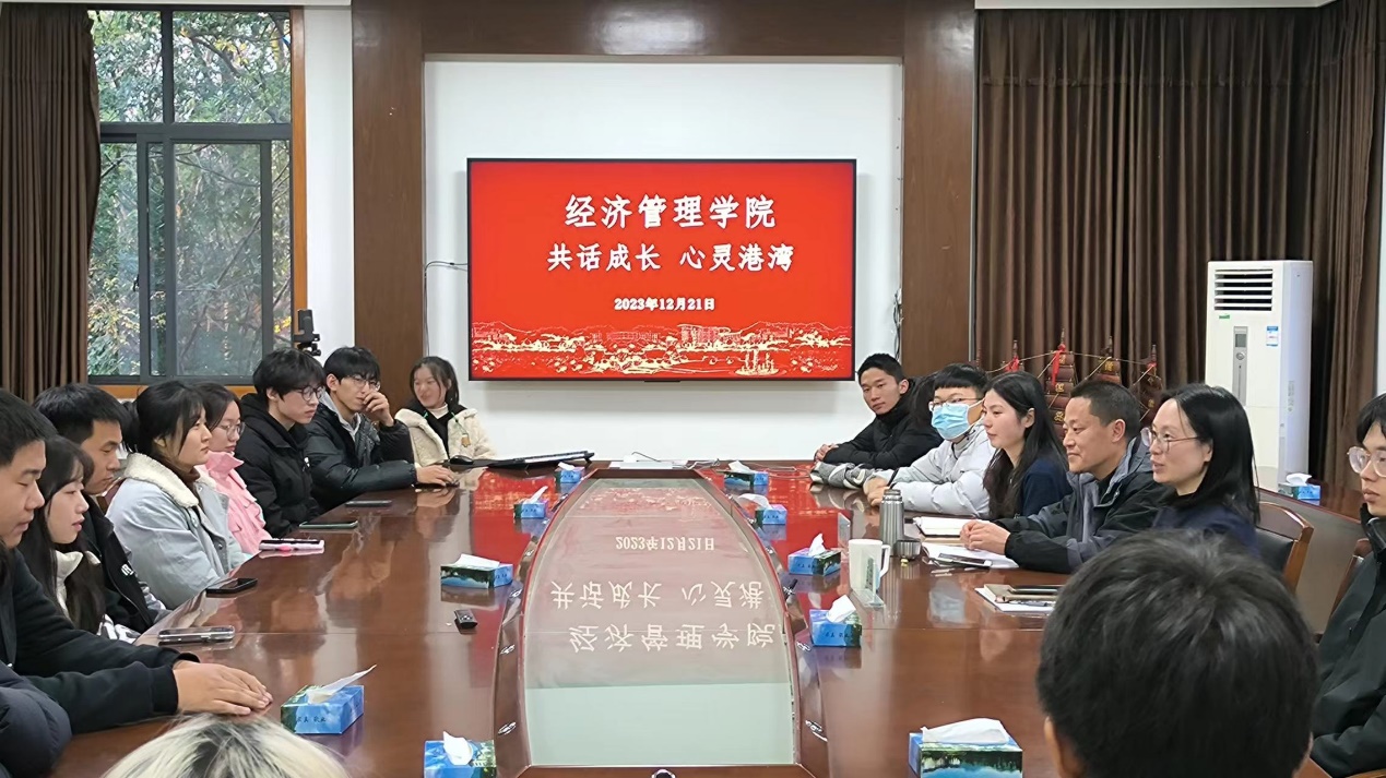 12月21日,为进一步加强师生沟通,扎实做好学生服务工作,永利官网举办“共话成长-东湖心灵港湾”活动。学院党委书记陈劲松、党委副书记胡云云、心理辅导站站长王子旋及学生代表30余人参加。
