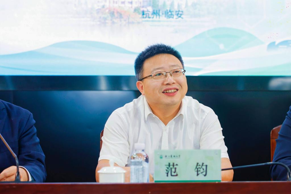 朱斌对各成员单位的到来表示欢迎。他介绍了学校历史沿革以及鲜明的生态化办学特色、深厚的农林办学底色,强调了学校实施“文科振兴计划”的积极影响和深刻意义。朱斌指出,浙江省生态文明智库联盟自成立以来,在大成集智、联合攻关、国际学术论坛、共建共享等方面取得了一系列的标志性成果,有力推动了我校乃至我省生态文明领域学术研究。未来,学校将全方位支持两个智库加强建设,提升智库的学术水平和政策影响力,为浙江省生态文明建设提供更加有力的智力支持和政策建议,促进学校的哲学社会科学繁荣发展。