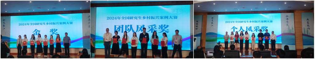 2024年6月19日至21日,我院朱哲毅副教授和宁可副教授带领其硕士研究生团队赴贵州省麻江县参加“2024年全国研究生乡村振兴案例大赛”决赛。经过激烈角逐,团队参赛项目《乡村生态产品促进农民农村共同富裕的模式与机制研究》荣获金奖,团队成员的出色表现荣获“团队风采奖”,项目负责人施芳同学获“个人风采奖”,为学校争光添彩。