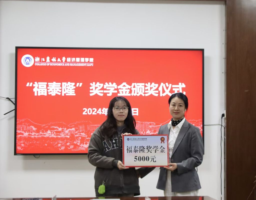 据悉,“福泰隆”奖学金是由浙江福泰隆连锁超市有限公司出资,在永利官网设立教育发展基金,并每年从基金中提取5万元作为福泰隆“”奖学金,用以奖励和表彰品学兼优的经管学子。