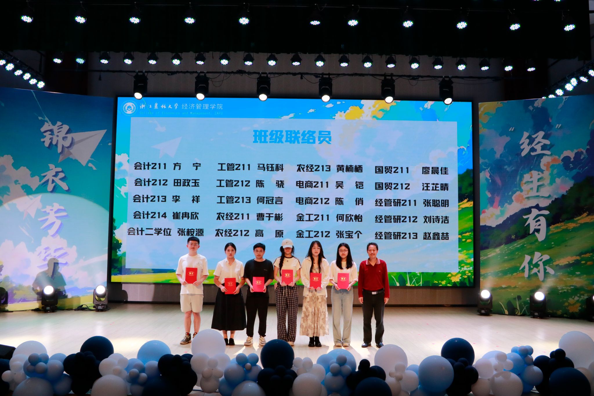 锦衣芳华,“经”生有你。6月15日晚,永利集团304官网2025届毕业生欢送会在衣锦报告厅成功举行。院长吴伟光、院党委书记陈劲松、副院长蔡细平、朱臻、党委副书记曹磊出席晚会,教师代表、各年级辅导员、在校生代表以及2025届本研毕业生代表观看演出。