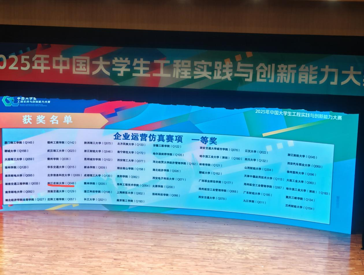 2025年中国大学生工程实践和创新能力大赛国赛阶段于2025年8月7日在大连理工大学和大连工业大学举行。全国32个省级行政区的166所高校,共204支队伍、608名学生参与了全国总决赛。全国总决赛采取初赛与决赛两级赛制,经过初赛选拔,共有108支参赛队进入决赛环节。经管院汤晓蔚老师带领的工管233班团队(成员包括曾珏霖、李润祥和吴鸿盈),经过两天的初赛和决赛激烈角逐,在虚拟仿真赛道的企业运营虚拟仿真(EOVS)比赛中荣获国赛一等奖。这是我校参加该赛事以来,首次入围国赛并获得的最佳成绩。