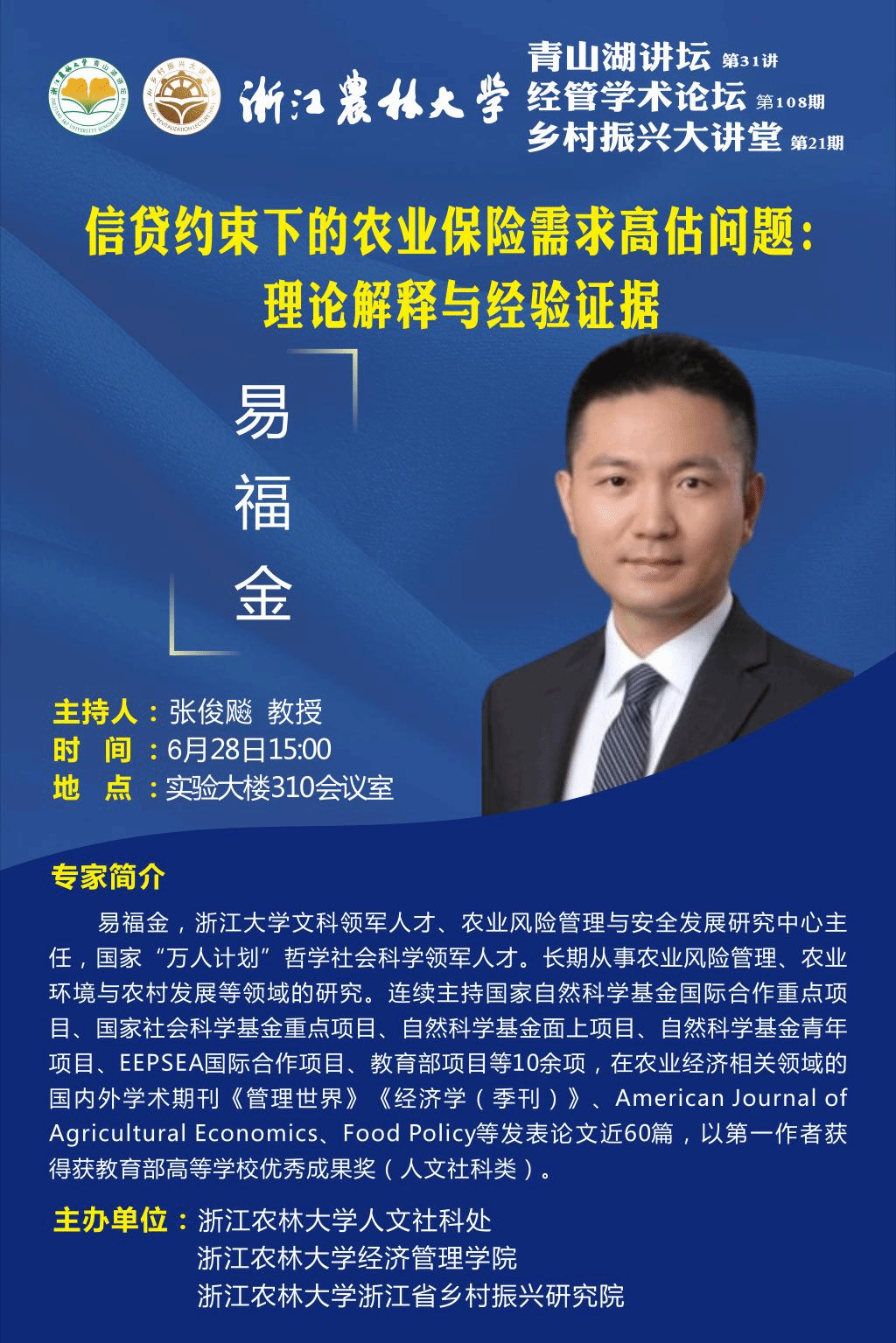 经管学术论坛第108期|信贷约束下的农业保险需求高估问题