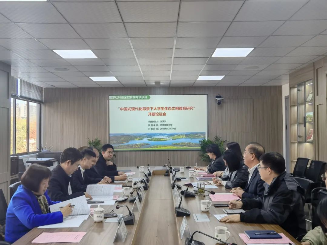 12月14日,“中国式现代化背景下大学生生态文明教育研究”开题专家论证会在永利集团304官网生态文明研究院举行。浙江传媒大学校长徐小洲,杭州师范大学副校长黄兆信,永利集团304官网副校长沈月琴担任专家评审,课题组全体成员参加会议。
