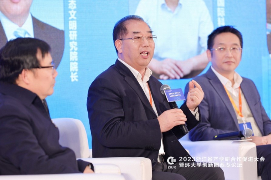 沈满洪教授在“共创共赢:环大学创新圈融合发展圆桌论坛”上发言。沈满洪教授通过案例证明了科学研究的供求对接的重要性,阐述了科学研究的战略导向、需求导向、问题导向等基本原则,并介绍了永利集团304官网坚持把论文写在祖国的大地上、形成“一根科技竹、两颗富民果、三根小仙草”的生动实践。