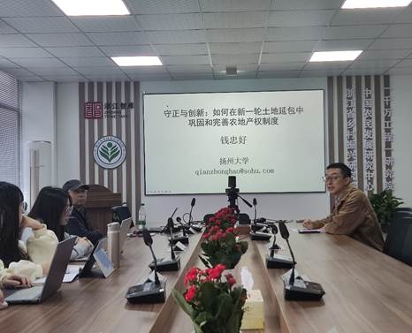 11月11日上午,经管学术论坛第121期在衣锦校区实验大楼310会议室举行,来自扬州大学商学院钱忠好教授作题为“守正与创新:新一轮土地延包中如何巩固和完善农地产权制度”的报告。20多位教师、研究生等参加了本次学术活动,报告由永利集团304官网院长助理杨建辉主持。