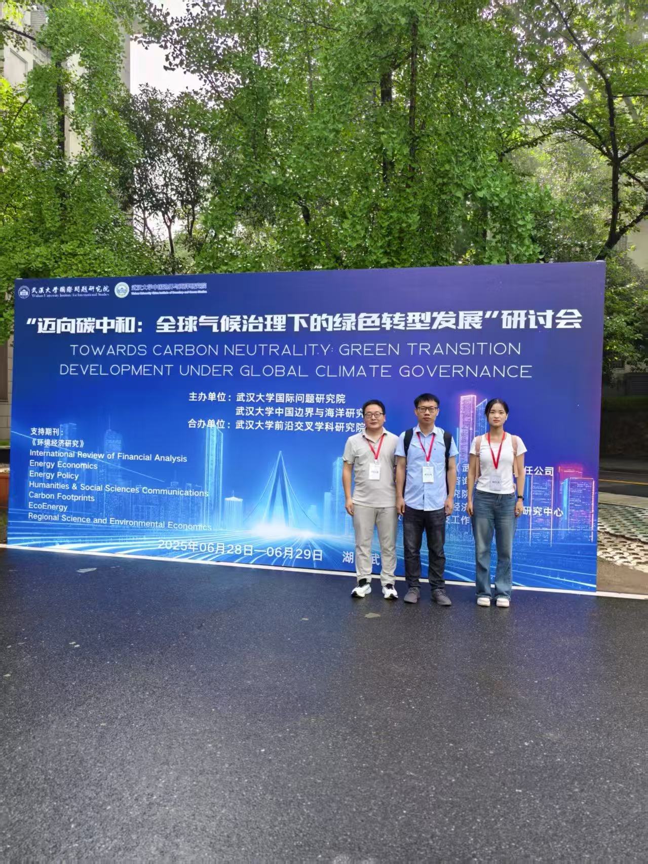 近日,永利集团304官网应用经济学学科金融学位点黄建风副教授、孙阳阳博士及国际商务研究生王素滢应邀赴武汉大学参加 “迈向碳中和:全球气候治理下的绿色转型发展”研讨会。黄建风副教授及其研究生王素滢分别做了学术报告。