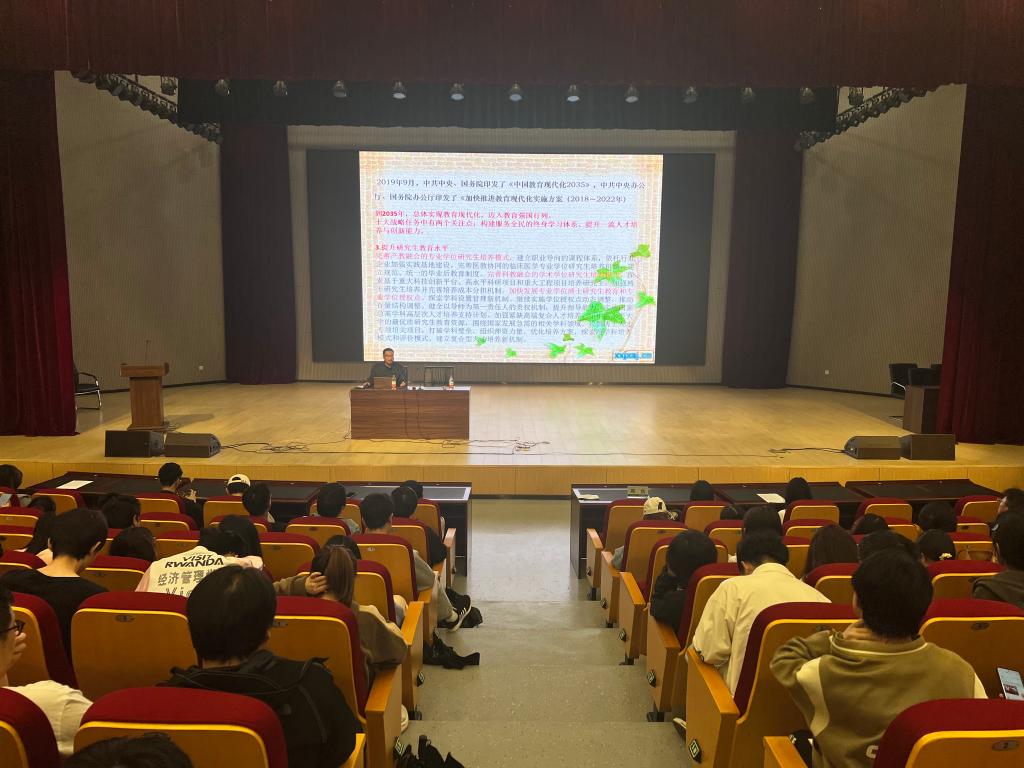 会上,周凯结合后疫情时代的就业形势分析了考研的重要性和必要性,围绕“为什么考、考什么、研究生收费及奖助政策”等三个方面对考研进行了重点解析,结合当前大学生考研的背景趋势,鼓励学生积极考研深造,以获得更多的发展机会。