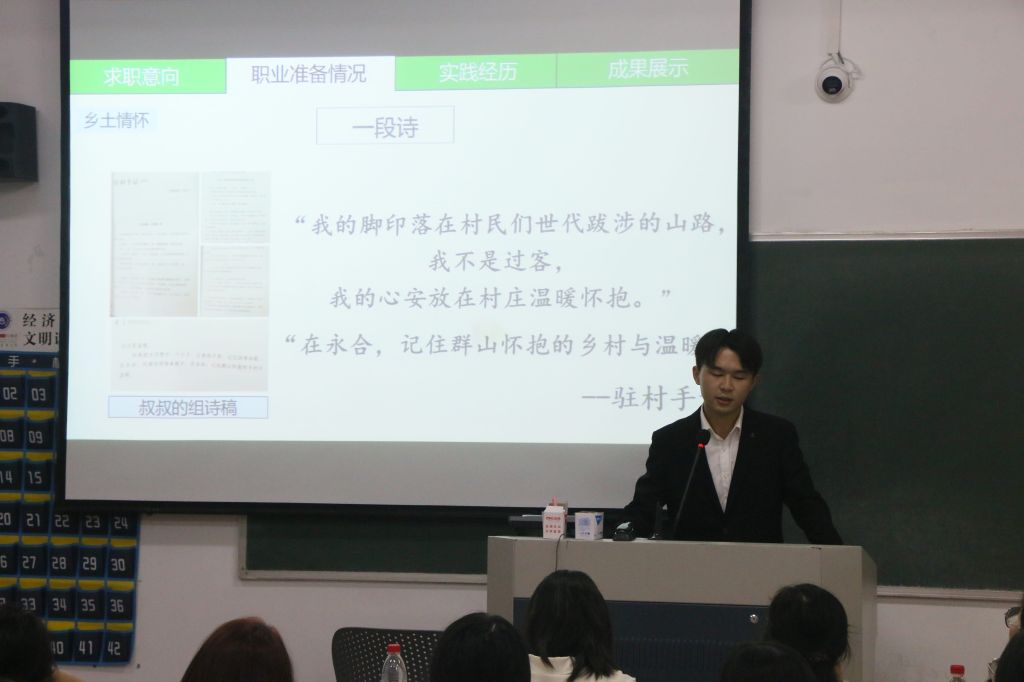 通过学院前期文本选拔,来自大二、大三年级的12名同学进入成长赛道决赛。工商管理22级李建勋怀揣浓烈乡土情怀,决心响应时代号召,成为农村职业经理人,助力推动乡村全面振兴;农林经济管理23级徐李德始终牢记初心使命,坚定理想信念,传承弘扬红船精神,希望成为生态思政教育宣讲员;农林经济管理23级李旭然瞄准新兴技术和传统农业碰撞带来的巨大想象空间和增长潜力,期望成为农业元宇宙体验设计师,以技术之光点亮美丽乡村......