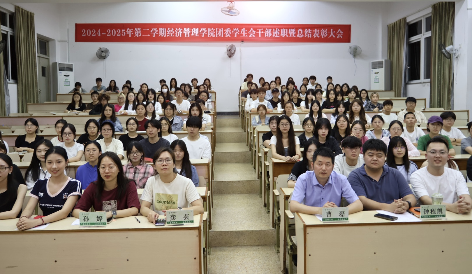 最后,学院学生工作负责人曹磊讲话。他肯定了团学组织在学院发展中做出的贡献,同时希望广大团学干部勇于创新,打破部门壁垒,加强合作,增强团队凝聚力,争做有理想、有担当的新时代经管人!