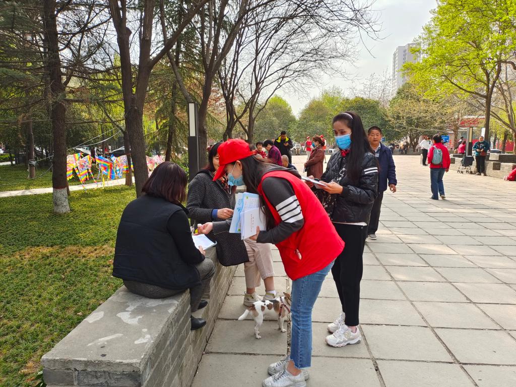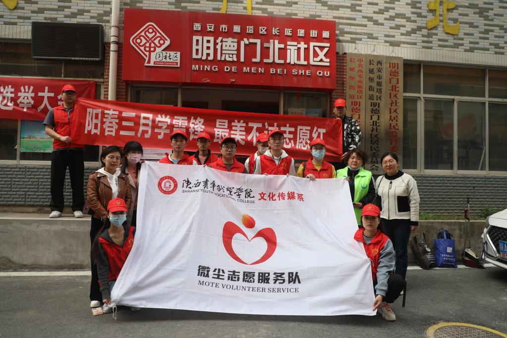 3月24日,文化传媒系学生工作负责人倪娜、系团工委书记焦姣带领“微尘”志愿服务队赴明德门北社区开展志愿服务活动。