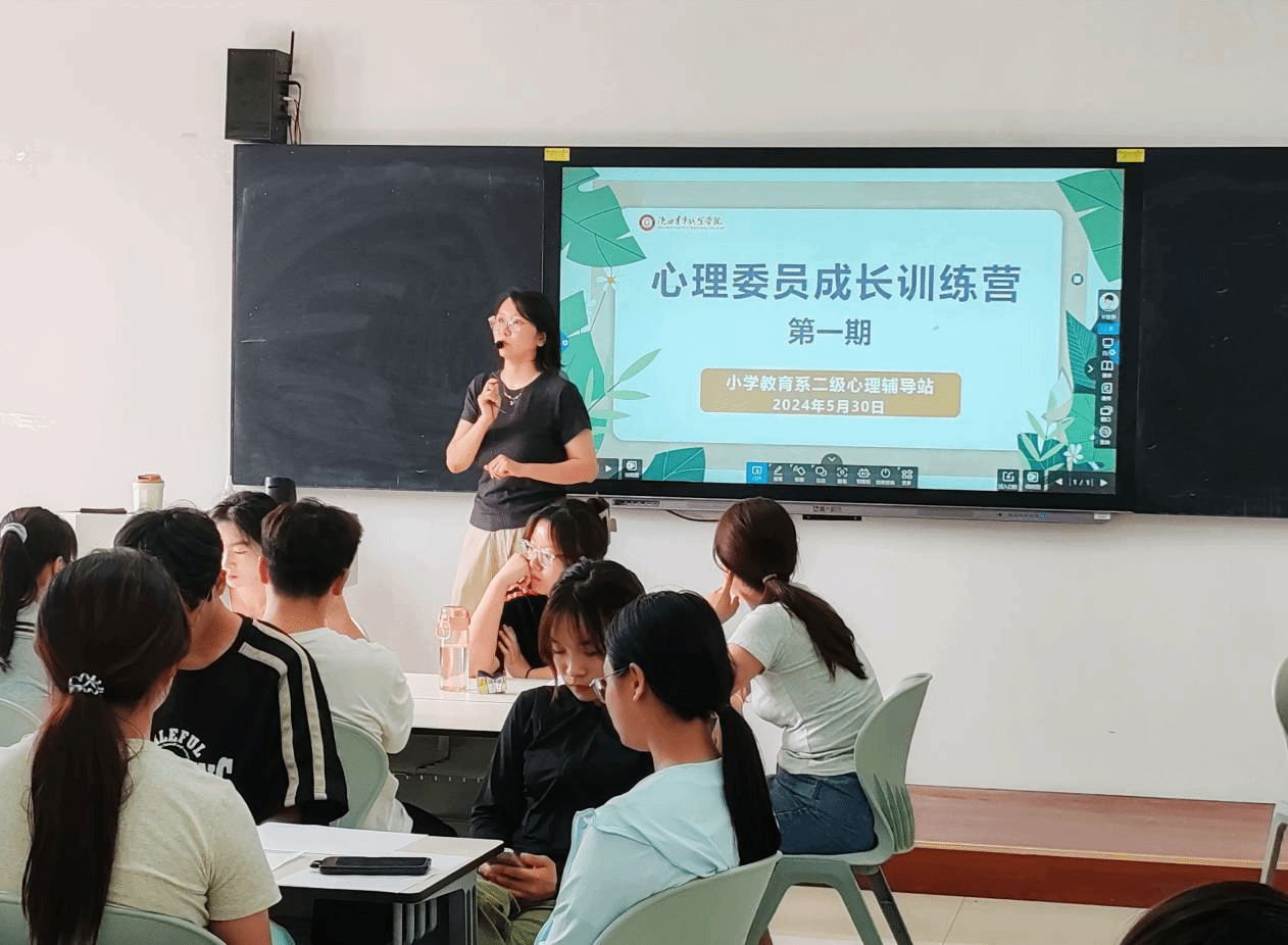 5月30日,小学教育系二级心理辅导站举办心理委员成长训练营第一期,本次培训由小学教育系心理学专业讲师高洁主讲,2023级全体心理委员及宿舍心理联络员参与本次活动。